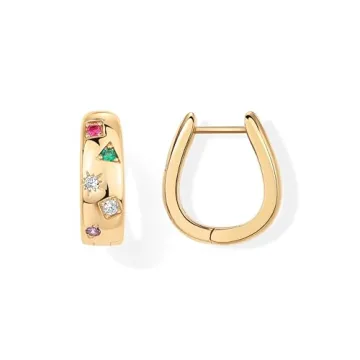 Show more Discover the stunning artistry and elegance of PAVOI's 14K Yellow Gold Plated Chunky Huggie Earrings, designed to elevate any outfit with their radiant charm. Crafted with multi-colored cubic zirconia, these earrings are not just accessories; they are a statement piece that speaks to your unique style. Measuring at an optimal size of 18mm height, 6mm width, and 16.3mm length, they strike the perfect balance between boldness and sophistication. The high-polish finish gives them the look of genuine solid gold, enhancing their luxurious feel without the weight, making them ideal for everyday wear.
