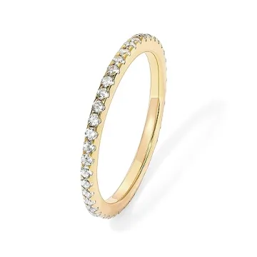 Show moreElevate your everyday elegance with the **PAVOI 14K Yellow Gold Plated 925 Sterling Silver Stackable CZ Ring**. This exquisite eternity ring is not just a piece of jewelry; it’s a statement of style and sophistication. Designed for the modern woman, this ring features stunning **1.25mm AAAAA quality cubic zirconia stones** that radiate brilliance, perfect for any occasion, whether it's a romantic dinner or a casual outing. The durable yet lightweight band made of **high-quality sterling silver** ensures both comfort and longevity, so you can wear it day in and day out with ease. Its **thin band design** makes it ideal for stacking with other rings, allowing for endless combinations to reflect your unique style.