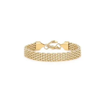 Show more Introducing the PAVOI 14K Yellow Gold Plated Chunky Chain Adjustable Bracelet - an elegant blend of style and quality! This stunning woven link bracelet is not just another piece of jewelry; it's a statement that embodies sophistication and versatility. With a length of 6 inches and an extendable 1.5 inches, this adjustable bracelet offers a perfect fit for any wrist size. The eye-catching 8mm width gives it a bold presence, making it a must-have accessory for any fashion-forward woman. Crafted with care, this bracelet showcases a unique basket-weave design that elevates your look, whether you're dressing up for a night out or keeping it casual during the day.