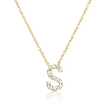 PAVOI 14K Yellow Gold Plated Cubic Zirconia Initial Necklace | Letter Necklaces for Women | S Initial
