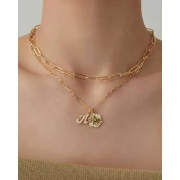 PAVOI 14K Yellow Gold Plated Dainty Hexagon Initial Letter Pendant Layered Necklace Jewelry Gift for Women | Paperclip Layering Chain Necklace | Letter A
