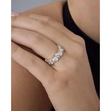 Show moreEmbrace elegant sophistication with the PAVOI 14K Yellow Gold Plated Pear Love Eternity Ring. This exquisite piece of jewelry is designed to make you feel radiant and cherished, perfect for any occasion, especially meaningful moments like engagements or weddings. Featuring a stunning array of pear-shaped cubic zirconia stones, this ring adds a luxurious touch to your jewelry collection. Crafted in 14K yellow gold plating, it shines brilliantly and showcases a width of 6.5mm, making it a statement piece that draws attention while remaining comfortable for everyday wear.