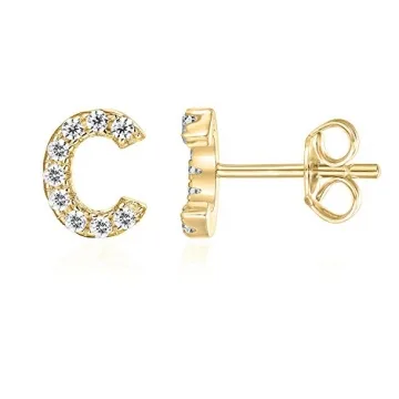 Show more Introducing the PAVOI 14K Yellow Gold Plated Sterling Silver CZ Alphabet Letter Earrings – a stylish and personalized accessory designed for the modern woman. Crafted with meticulous attention to detail, these exquisite earrings feature a captivating initial design that adds a unique touch to any outfit. The earrings are adorned with high-quality AAAAA cubic zirconia stones that provide a stunning sparkle without being overly flashy. Measuring at 1/8"W x 1/4"H, they are the perfect size to make a statement while still being lightweight and comfortable to wear all day. What sets these earrings apart is their hypoallergenic nature courtesy of the 14K yellow gold plating over sterling silver, making them an ideal choice for those with sensitive ears.
