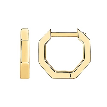 Introducing the stunning PAVOI 14K Gold Plated Ultra Thick Huggie Earrings, an exquisite addition to your jewelry collection that seamlessly blends elegance and modern flair. Crafted with a base of 925 sterling silver and plated with rich 14K yellow gold, these earrings are designed to be both stylish and comfortable. Their unique geometric shape hugs your earlobe, offering a chic look that’s perfect for any occasion. With a diameter of 13.2mm and a width...