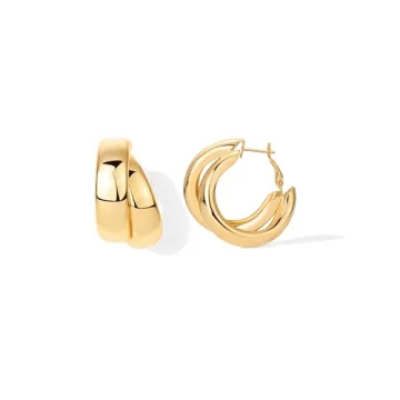 Show moreIndulge yourself in the elegance of the PAVOI 14K Yellow Gold Plated Sterling Silver Posts Statement Hoop Earrings. With a generous outer diameter of 34mm (1.3 inches), these chunky hoop earrings are designed for those who desire to add a dash of glamour to their everyday look. Whether you're dressing up for a special occasion or keeping it casual for a day out, these versatile earrings will effortlessly elevate your outfit. Crafted with care, our earrings not only shine in style but also prioritize comfort and safety, featuring a durable finish that is nickel-free, cadmium-free, lead-free, and hypoallergenic, ideal for sensitive skin.