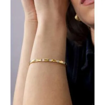 PAVOI 14K Yellow Gold Plated Thin Love Bangle Bracelets for Women | Dainty Waterproof Stainless Steel Cubic Zirconia Hinged Bracelet Dupe | 7"
