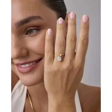 Show more Discover the exquisite charm of our stunning 14K yellow gold plated ring, designed to steal the spotlight! This elegant piece features a 1.7mm wide wraparound band, showcasing a striking 7mm x 9mm oval cut premium cubic zirconia at its center, accompanied by sparkling 3mm round cz stones that add a touch of brilliance. Crafted with meticulous care, this ring not only promises beauty but durability, boasting a waterproof finish that's 100% nickel-free, cadmium-free, lead-free, and hypoallergenic. It's perfect for those with sensitive skin, allowing for all-day, everyday wear without worry.