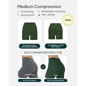 PAVOI ACTIVE Sculpting Shorts | High Waisted Butt Shaping 4" Women's Biker Low Impact Shorts | FlexFlow | X-Small, Army