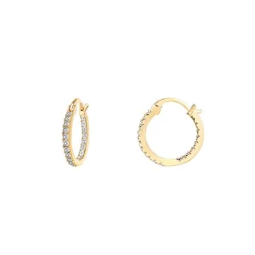 Show moreDiscover the perfect blend of elegance and versatility with the PAVOI Womens 14K Plated Yellow Gold - 925 Sterling Silver Cubic Zirconia Hoop Earrings. These stunning hoop earrings, measuring 15mm (0.6 inches) in diameter, are designed to elevate any outfit, making them the ideal accessory for both casual outings and formal events. The eye-catching sparkle of the cubic zirconia stones, intricately set inside and outside the hoops, will ensure you shine through any occasion. Crafted with care, these earrings are plated in luxurious 14K yellow gold, offering a radiant finish that exudes sophistication.