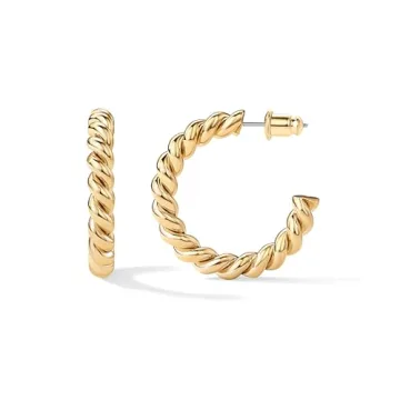 PAVOI Womens 14K Plated – Yellow Gold - Sterling Silver Rope Round Hoop Earring