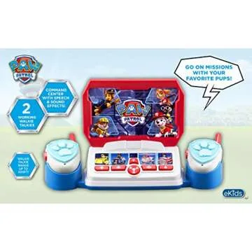 Show more Get ready for an adventure with these incredible walkie talkies, designed especially for your little ones! With vibrant Paw Patrol graphics, these walkie talkies transform ordinary play into extraordinary missions. Whether your child is teaming up with friends or playing pretend rescue missions, they will love the excitement and interactivity these devices bring. Super easy to use, the walkie talkies feature a simple push-to-talk button, making communication effortless and engaging for young users.