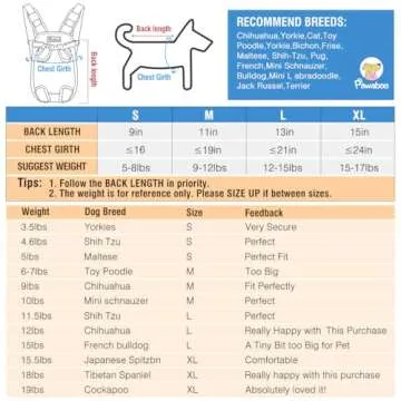 Show more The Pawaboo Dog Carrier Backpack is a revolutionary product designed specifically for small dogs weighing up to 18 pounds, offering both comfort and convenience for pet owners. This innovative carrier ensures that your furry friend is securely nestled close to you, making every adventure enjoyable and stress-free. The legs-out and tail-out design allows your pet to sit comfortably while also feeling more secure, alleviating anxiety they might experience in traditional carriers. With easy-to-use hook-and-loop, zipper, and elastic openings, this backpack adapts to your pet's size, providing a snug fit.