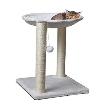 Paws & Pals 3-in-1 Cat Scratching Post w/Hammock & Toy | No-Effort Assembly, Sturdy Pressed-Wood w/Vegan Fur Carpet - Pet Bed Scratch Lounge Furniture Best for Kitten & Large Kitty Cats - Tall, White