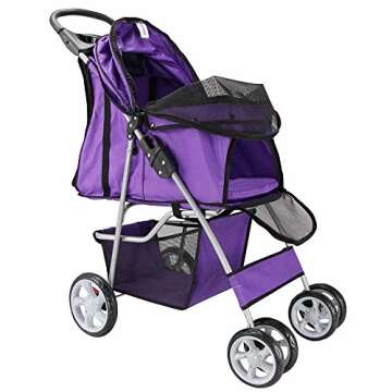 Paws & Pals Lavender Pet Stroller - Easy Folding Travel Carrier for Pets