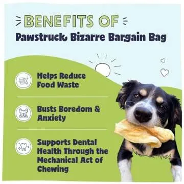 Pawstruck Bizarre Bargain Bag Assorted Natural Dog Chew Treats - Animal Ears, Jerky, Bones, Hooves, Beef Straps - Long Lasting Rawhide Alternative for Chewers, All Breeds - 1 lb, Packaging May Vary