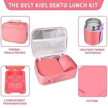 Pawtong Bento Lunch Box Set With 10oz Soup Thermo, Leak-proof Lunch Containers with 4 Compartment, Kids Hot Thermo Food Jar/Insulation Lunch Bag, Food Containers for School(Solid)