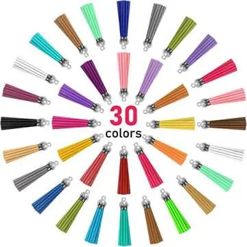 Show morePaxcoo Keychain Tassels are the beautiful blend of functionality and creativity that you need for your next crafting project! This bulk set of 120 handcrafted tassels comes in an array of 30 vibrant colors, allowing you to customize and enhance a variety of accessories, from keychains to jewelry. Made with premium quality suede leather for a lightweight and elegant finish, each tassel measures approximately 2.2 inches, giving you ample length for draping and styling. The metallic caps add a touch of sophistication, making them ideal for personal projects or as thoughtful gifts for your friends!