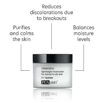 The PCA SKIN Clearskin Moisturizer stands out thanks to its lightweight texture, ensuring quick absorption that won't leave your skin greasy or clogged. This essential formulation is ideal for daily use, helping to balance moisture levels and control oil production. Its combination of natural plant extracts works diligently to calm irritation and purify the skin, making it a recommended choice for for those with sensitive skin types.