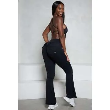 Pchee Women Flare Scrunch Butt Yoga Pants - Soft Stretch, No Front Seam, Medium Compression Waistband, Button Pockets on Rear, True to Size, Model is 5'8" Wearing Size Small (Black, Large)