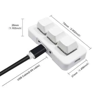 PCsensor 3-Key Mini Keypad 2.4G Wireless USB 2 in 1 Mechanical Gaming Keyboard Hot Key Customized Program with RGB Led for Gaming OSU Office Work
