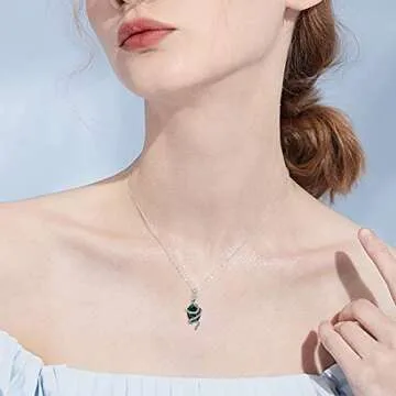 PDTJMTG Sterling Silver Snake Necklace with Green Crystal for Women - Vintage Gift