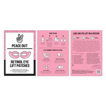 Show moreDiscover a revolutionary way to refresh and rejuvenate your eyes with the PEACE OUT Retinol Eye Lift Patches. Specially designed for all shapes and sizes, these bio-cellulose patches deliver a comprehensive 360° coverage filled with powerful ingredients. Each patch is infused with encapsulated retinol, known for its remarkable ability to diminish fine lines and wrinkles while boosting hydration. Say goodbye to tired-looking eyes and hello to a revitalized and firm appearance that radiates confidence!