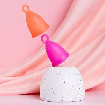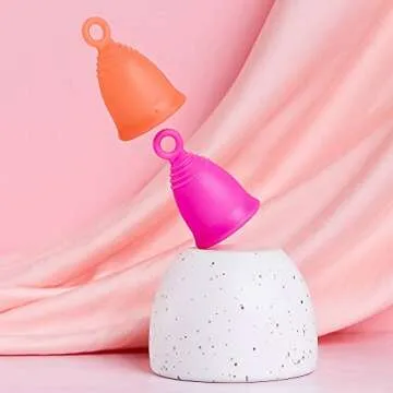 Peachlife Silicone Ring Menstrual Cup with Loop Pull Stem for Easy Removal - Reusable 12 Hour Tampon Alternative - Medium Size, Soft Peachcup