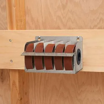 Peachtree Woodworking Supply Steel Sandpaper Dispenser with 5 Cloth Abrasive 1" x 20' Rolls Ideal for Wood Turners, Furniture Restoration, Automotive, Home, Workshop and General Use