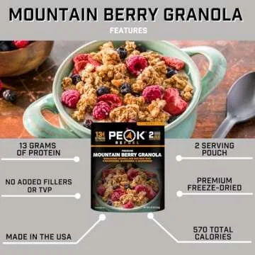 Peak Refuel Mountain Berry Granola with Rice Milk | Vegan, Dairy Free | Freeze Dried Backpacking and Camping Food | Amazing Taste | Quick Prep | Lightweight
