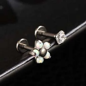 PEAKLINK Flower Opal Labrets Studs 16g Titanium Medusa Tragus Helix Piercings Cartilage Studs Curated Ear Set 8mm