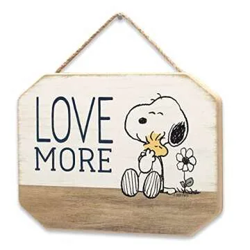 Peanuts Snoopy Love More Hanging Wall Decor - Adorable Snoopy and Woodstock Sign for Home
