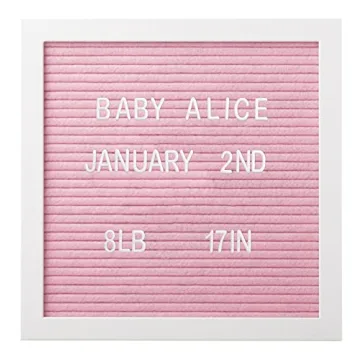 The letterboard is made from a sturdy white wooden frame with a soft pink felt background.