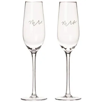 Pearhead Mr. & Mrs. Champagne Flute Set - Elegant His and Hers Wedding Toasting Glasses for Unforgettable Celebrations, Bridal Shower and Registry Idea, Tall Wine Glasses for Bride and Groom