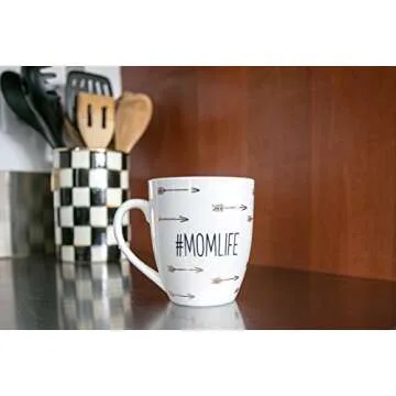 Show moreIntroduce a wave of warmth and whimsy to your daily coffee ritual with the Pearhead Whimsical Parent Mug. This adorable #momlife ceramic coffee mug beautifully combines style and practicality for the modern mother. Inspired by the joys and challenges of motherhood, the mug features a delightful gold arrow print design that elegantly surrounds the heartwarming #momlife graphic. Crafted to hold up to 16 fluid ounces, this mug is perfect for savoring your favorite brew while embracing the delightful chaos of parenthood. Its generous size and large handle ensure comfortable sipping, making each moment feel special.