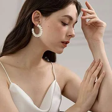 Pearl Hoop Earrings for Women,14K Gold Plated Open Large Circle Round Pearl Earrings Women Fashion Jewelry 48mm