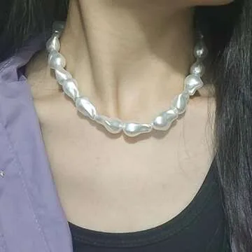 Show more Discover the exquisite beauty of the Irregular Baroque Pearls Choker Necklace, a stunning piece designed to elevate your jewelry collection. This necklace stands out with its irregularly shaped baroque pearls, each exuding a unique charm that captures the essence of individuality. Crafted with a bohemian flair, it perfectly complements any outfit, making it a versatile accessory for various occasions.