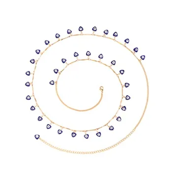 Show moreIntroducing the PEARLADA Dangle Blue Evil Eye Waist Beads, an exquisite belly chain designed to elevate your summer style while adding a touch of elegance and playfulness. This stunning piece combines 18k gold-plated copper with intricate enamel charms, which are not only visually appealing but also serve as a stylish reminder to maintain a healthy waistline. With a versatile length of 29.5+6 inches, this sexy beach bikini body chain complements your figure beautifully, making it an essential accessory for chic summer outings.