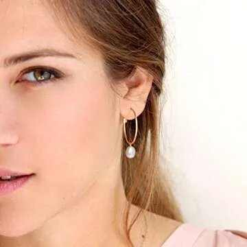 PEARLADA Gold Huggie Hoop Earrings with Charms for Women - Elegant Jewelry with Pearls