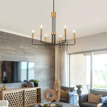 Peblto Modern Black and Gold Chandelier, Farmhouse 6-Light Dining Room Light Fixture, Vintage Hanging Chandeliers for Dining Room, Living Room, Foyer, Hallway