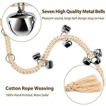 Peclot Door Bells for Dog, Potty Training Doorbells for Puppies, Adjustable Hanging Dogs Door Bell, Durable Cotton Rope Woven Doorbells for Sliding Door (Silver, Pack of 1)