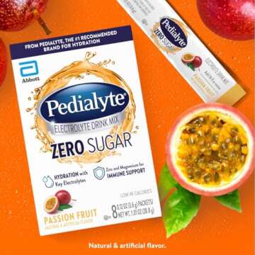 Show moreElevate your hydration experience with the Pedialyte Electrolyte Drink Mix With Zero Sugar. Specifically formulated to replenish lost electrolytes without adding unnecessary sugars, this drink mix offers a refreshing and delicious way to stay hydrated. Each packet contains the perfect blend of key electrolytes, including sodium, chloride, and potassium, ensuring your body recovers effectively whether you’re dealing with dehydration from physical activity, illness, or just daily life. The delightful Passion Fruit flavor combines tropical sweetness with a hint of tartness, making hydration something you actually look forward to. Enjoy the confidence of choosing a product from Pedialyte, the #1 doctor-recommended brand for effective hydration.