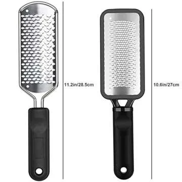 Show more Introducing the Pedicure Foot File - 2Pcs Stainless Steel Colossal Foot Rasp, the ultimate solution for achieving salon-quality pedicures in the comfort of your home. This professional-grade foot file is specially crafted with a stainless steel wavy pattern surface that effortlessly tackles thick calluses, stubborn heel skin, and tough deep skin layers. Enjoy soft, smooth, and beautiful feet without the need for costly salon visits. Lightweight yet durable, its high-end materials ensure that you can maintain your foot care routine with ease and comfort.