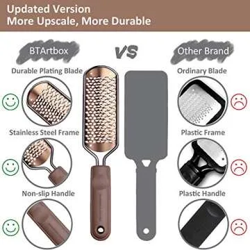 Unlike other foot files on the market, the BTArtbox offers a unique blend of durability, performance, and ergonomic design. Many competing products use less effective materials that wear down quickly or fail to provide the desired results. With meticulous craftsmanship and materials that allow for easy sterilization, the BTArtbox stands out in both quality and effectiveness. Customers rave about its efficiency and lasting power, making it a favorite compared to other options that often require frequent replacements or yield subpar results.