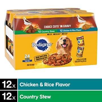 PEDIGREE CHOICE CUTS IN GRAVY Adult Canned Soft Wet Dog Food Variety Pack, Country Stew and Chicken & Rice Flavor, 13.2 oz. Cans (Pack of 24)
