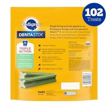 Not only do these treats promote healthy teeth, but they also serve as a delightful entertainment source. While your dog chews away at these wholesome snacks, they'll also be keeping their dental issues at bay. Make dental hygiene a joyful experience with Pedigree Dentastix!