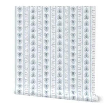 Transform your living space with the Peel & Stick Wallpaper Swatch - Leaf Stripes Preppy Botanical by Spoonflower. This enchanting wallpaper features a delicate leaf stripe design in soothing pastel blue tones, perfect for those who love the combination of traditional and cottagecore aesthetics. Made from durable, linen-textured fabric, this removable wallpaper is designed for easy installation, just peel, stick, and reposition to achieve your desired look without the worries of damage to...