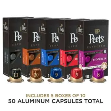Peet's Coffee, Dark and Medium Roast Espresso Capsules Variety Pack with Decaf, Compatible with Nespresso Original Machine - Intensity 8-11, 50 Count (5 Boxes of 10 Espresso Capsules)