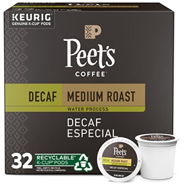 Peet's Medium Roast Decaf Coffee K-Cup Pods for Keurig - 32 Count