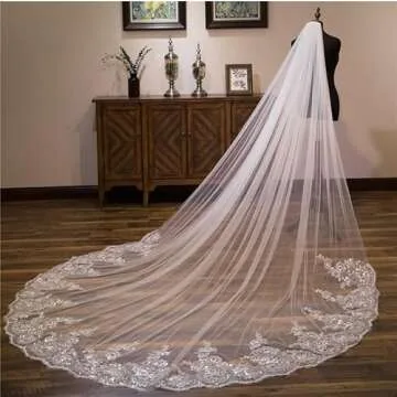 Show moreIntroducing the exquisite Pefantal Wedding Lace Veil, a stunning long cathedral veil designed for brides who wish to embody elegance on their special day. Measuring an impressive 118 inches in length, this luxurious veil showcases intricate handmade lace details seamlessly integrated with soft, airy tulle, creating a breathtakingly beautiful accessory that perfectly complements any bridal gown. Available in both pristine white and delicate light ivory, the veil enhances the beauty of brides of all styles, offering a timeless elegance that captures the essence of love and romance.
