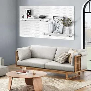Show moreIntroducing the ultimate organizational solution for anyone looking to beautify their space while maximizing functionality: the Pegboard Shelves 4 Pack. This exceptional shelving unit is crafted from extra heavy-duty wood and includes durable steel brackets that together provide unparalleled support for all your essentials, no matter their size. Whether you're looking to declutter your kitchen, organize your garage, or showcase your craft supplies, these pegboard shelves are designed to integrate seamlessly into your life, enhancing both utility and aesthetic.